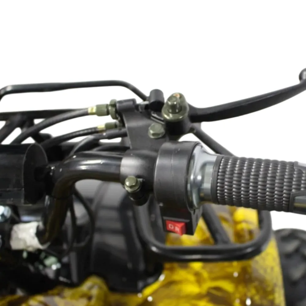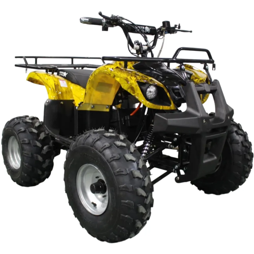 Данный квадрик обладает пониженной передачей, барабанными передними тормозами, а сзади - ножным дисковым гидравлическим тормозом. У него тихий и мягкий ход из-за отсутствия цепной передачи и наличия дифференциала.