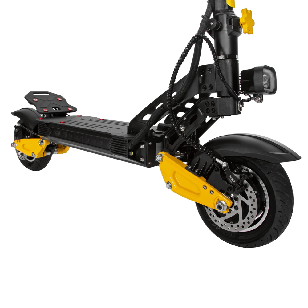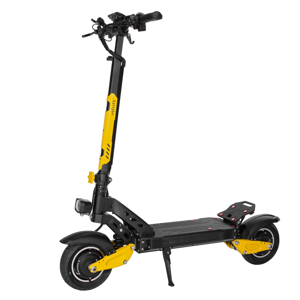 Электросамокат Syccyba M10 Flash Dual предлагает полноприводную систему мощностью 2400 Вт, запас хода до 70 км и скорость до 70 км/ч при весе всего 29 кг, что делает его оптимальным выбором для городских поездок и легкого бездорожья.