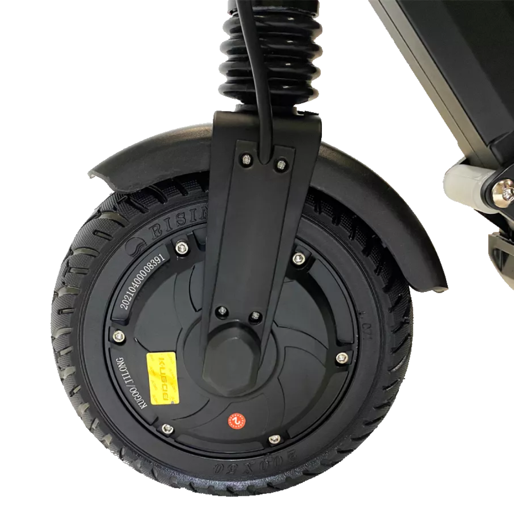 Kugoo S3 оснащен электродвигателем 350 Вт, мотор-колесо установлено впереди. Агрегат развивает максимальную скорость движения до 27 км/ч, имеет аккумулятор емкостью 6 А*ч. На одном заряде батареи проезжает около 26 км пути. Для увеличения дальности хода можно приобрести дополнительный аккумулятор, это экономит время. Пока один аккумулятор работает, второй можно установить на зарядку.