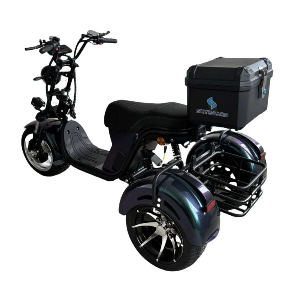 Skyboard MyRussia 3000W — это высокомощный электрический скутер нового поколения, созданный для тех, кто ценит динамику, комфорт и уверенность на дороге. Благодаря силовой установке на 3000 Вт и качественной аккумуляторной системе на базе LiFePO4, он обеспечивает впечатляющее ускорение, устойчивую тягу и высокий уровень автономности.