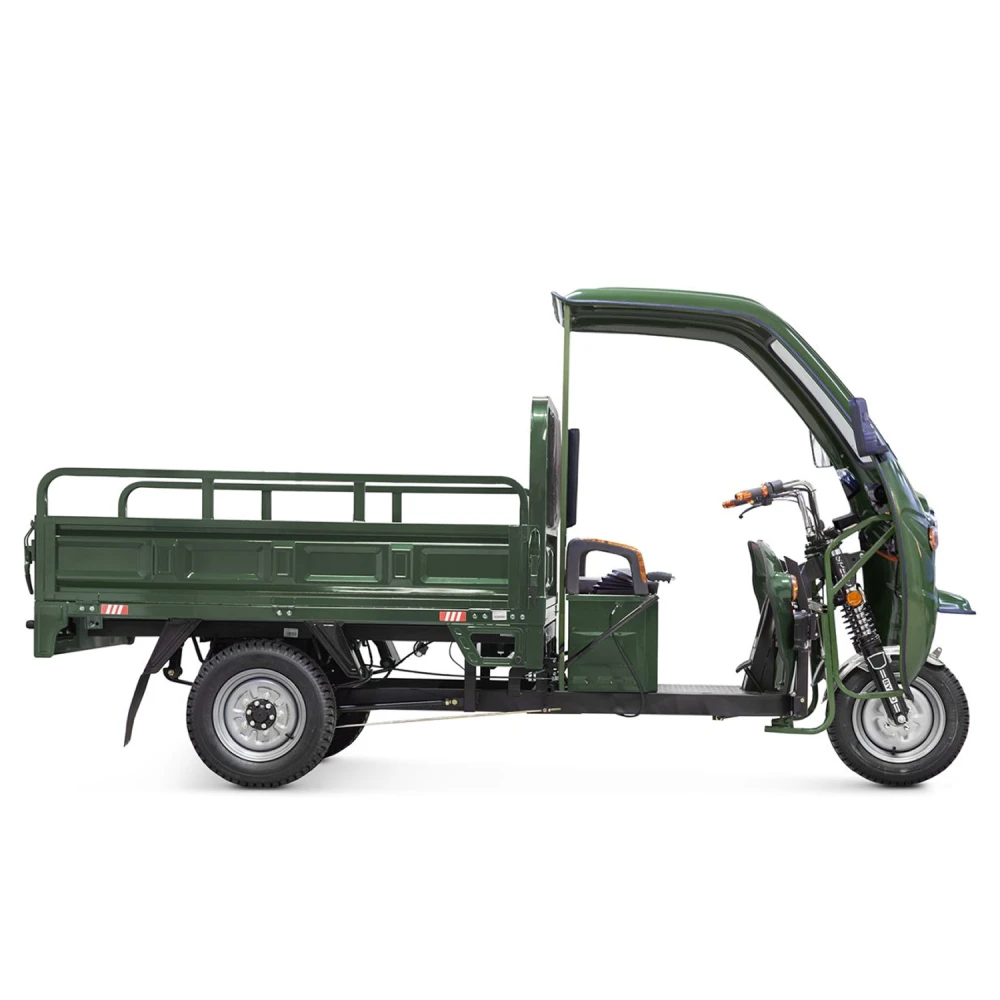 Грузовой электротрицикл Rutrike D4 NEXT — это идеальное сочетание мощности, надежности и комфорта, созданное для современных условий городских и сельских перевозок. Зеленый цвет придает ему стильный вид, а мощный двигатель в 1500 Вт обеспечивает отличную производительность. С напряжением в 60V и возможностью проезда до 80 км на одном заряде, этот трос станет незаменимым помощником для бизнеса и личных нужд. С габаритами 3300×1280×1650 мм и весом всего 279 кг, Rutrike D4 NEXT легко маневрирует даже в узких городских улицах. Задний привод и пониженная передача делают его идеальным для преодоления различных дорожных условий. Максимальная скорость до 25 км/ч позволяет быстро и эффективно выполнять доставки, а грузоподъемность в 1200 кг открывает широкие возможности для транспортировки товаров. Эксплуатация тросса возможна в любых погодных условиях благодаря всесезонной конструкции. Передняя подвеска с гидравлическими амортизаторами и задняя с рессорами обеспечивают комфортную поездку, даже на неровных участках. Кроме того, дополнительное пассажирское место позволяет использовать его не только для грузоперевозок, но и для перевозки людей.Время зарядки батареи составляет всего 8-10 часов, что делает Rutrike D4 NEXT удобным выбором для активных пользователей. Этот электротрицикл не просто средство передвижения — это ваш надежный партнер в бизнесе, готовый справиться с любыми задачами и сделать вашу жизнь проще и комфортнее.