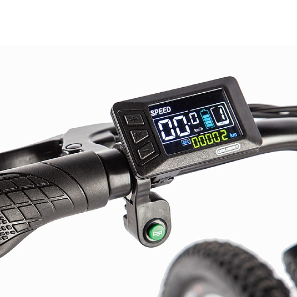 LCD-дисплей, с информацией о скорости, заряде и пробеге, уровень мощности ассистента