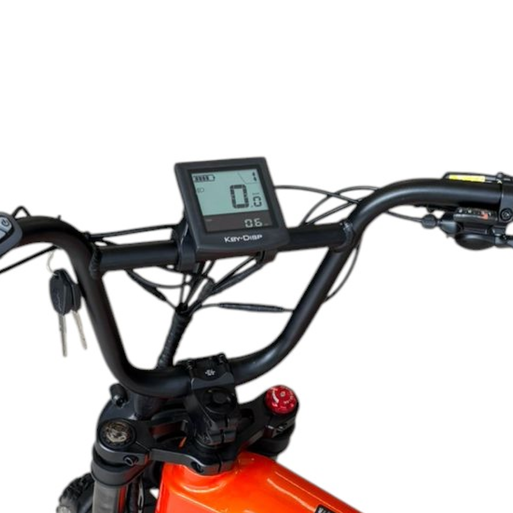 При весе 43 кг велосипед остаётся манёвренным и удобным, сохраняя солидность и устойчивость. Современный LCD-дисплей с бортовым компьютером отображает скорость, заряд и пробег, а система освещения (фара и стоп-сигналы) заботится о безопасности в любое время суток. В комплекте есть удобный багажник и подножка — практичные детали для ежедневной эксплуатации.