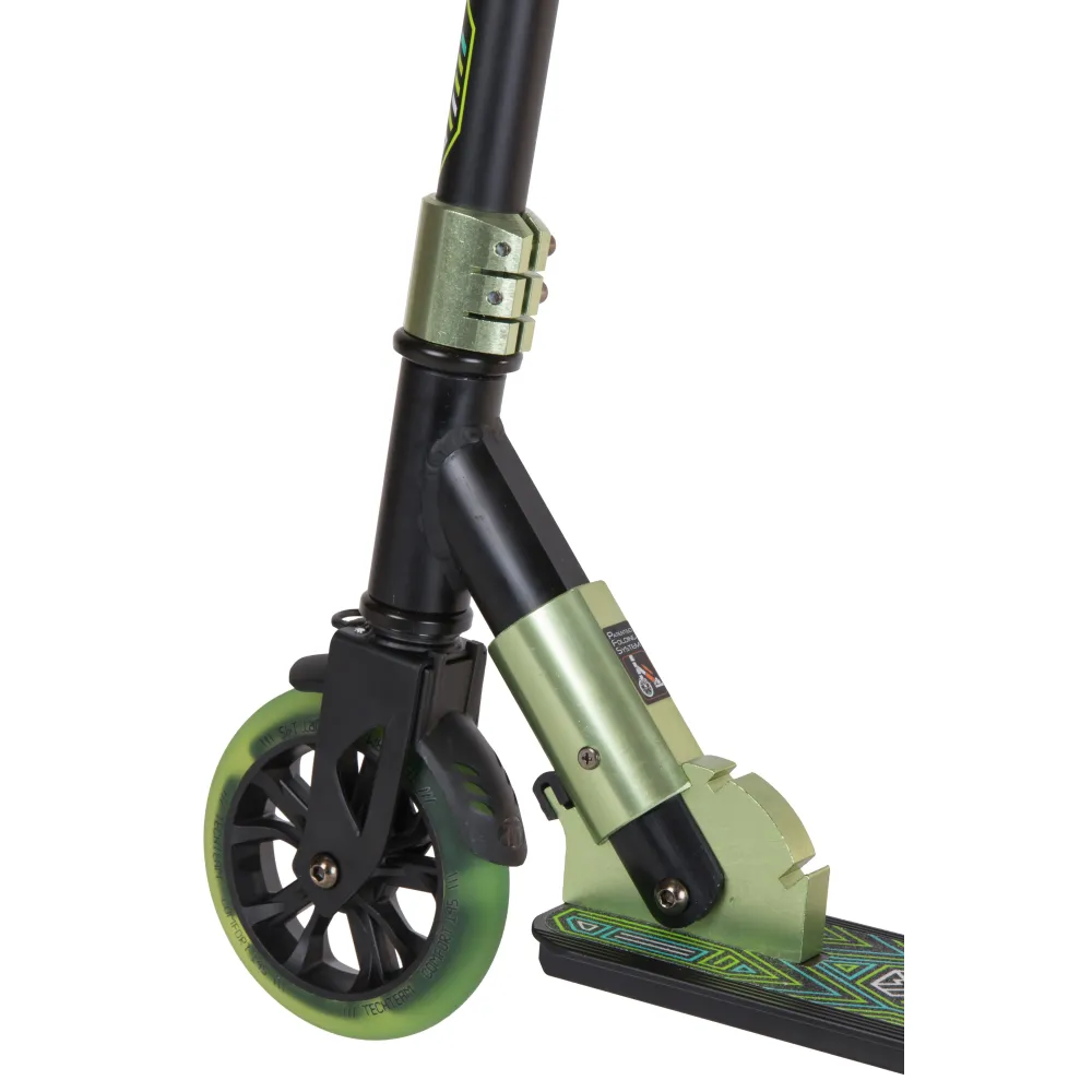 Если ребенок весит до 50 кг и имеет рост до 110 см, активный и целеустремленный, предлагаем обратить внимание именно на этот вариант самоката. Самокат весом 3,65 кг изготовлен з прочного и надежного алюминия. Руль шириной 475 мм представлен удобной формой, регулируется в трех позициях - 720-780-860-940 мм. Грипсы – прорезиненные, не скользящие, современные. Модель складывается по схеме Pull&Fold, быстро принимает компактные эргономичные размеры.